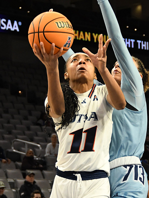 UTSA women’s basketball player Sidney Love playing against Rice in the 2025 AAC tournament. It was her final game with UTSA. – photo by Joe Alexander