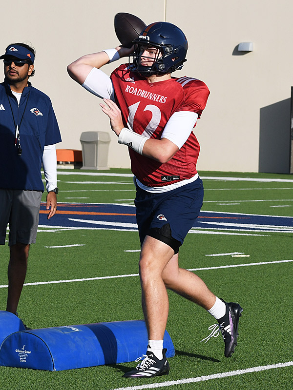 Max Gerlich going through quarterback drills at UTSA spring football practice on Thursday, April 10, 2025. – photo by Joe Alexander