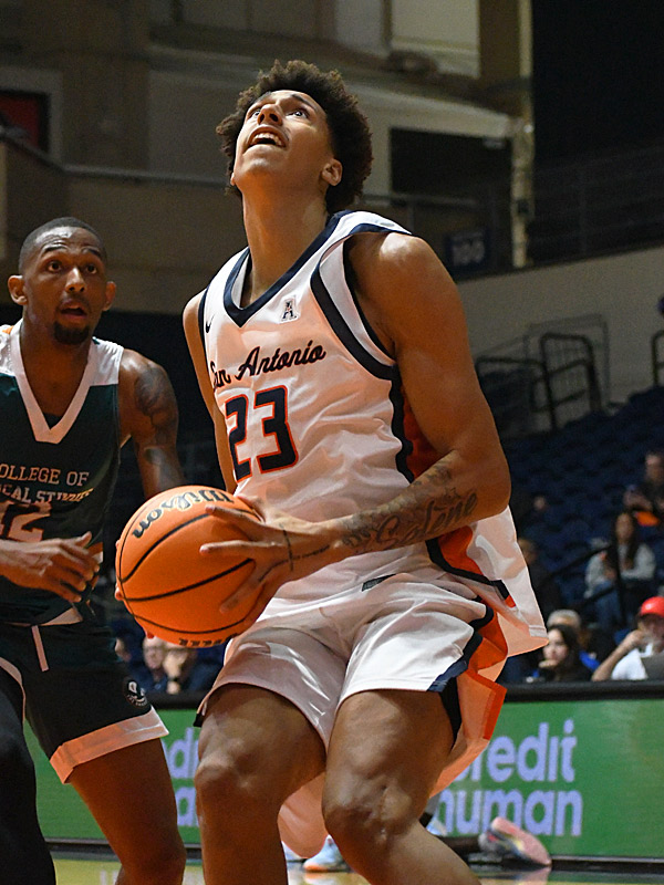 Matheo Coffi. UTSA beat College of Biblical Studies 97-30 in the men’s basketball season opener on Wednesday, Nov. 5, 2025, at the Convocation Center. – photo by Joe Alexander