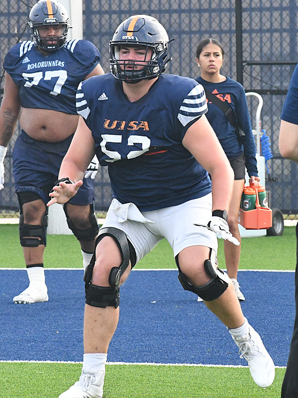 52 Preston Huneycutt. The UTSA offensive line at work in spring football practice on Monday, March 31, 2025. – photo by Joe Alexander