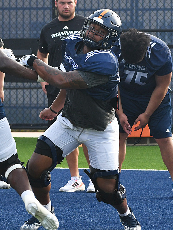 54 Davion Hurth. The UTSA offensive line at work in spring football practice on Monday, March 31, 2025. – photo by Joe Alexander