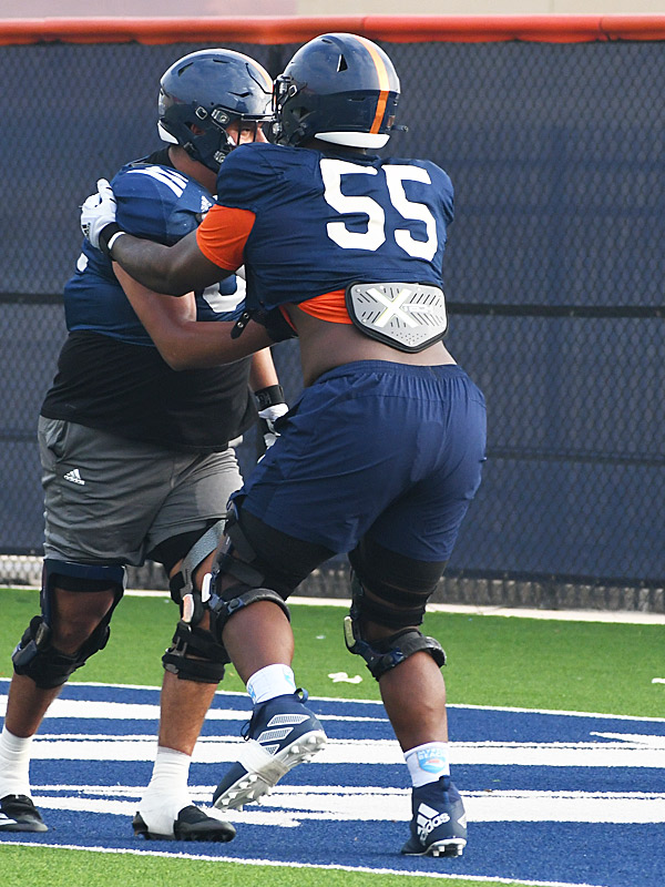 55 Kamar Missouri. The UTSA offensive line at work in spring football practice on Monday, March 31, 2025. – photo by Joe Alexander