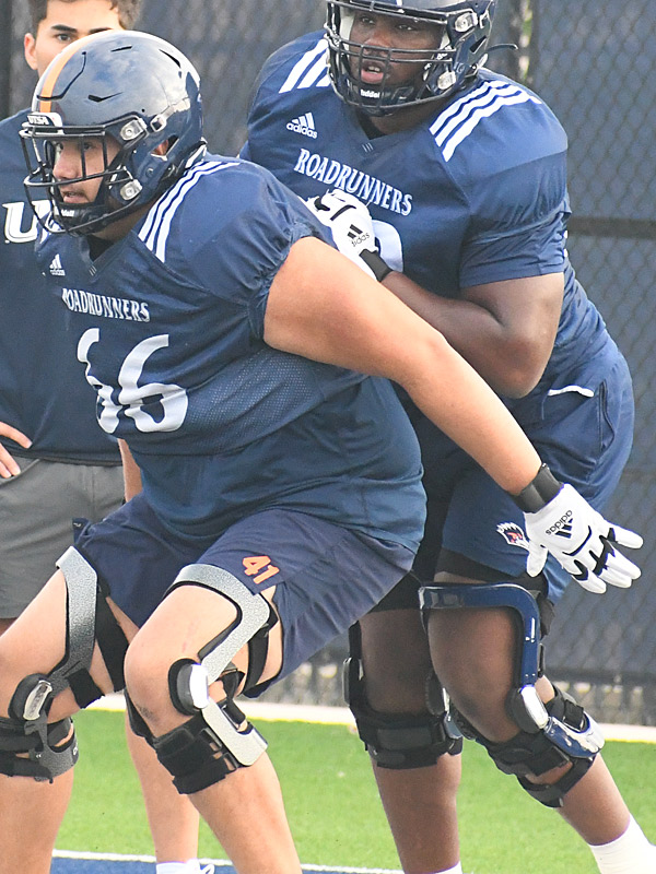 66 Andrew Alvarado. The UTSA offensive line at work in spring football practice on Monday, March 31, 2025. – photo by Joe Alexander