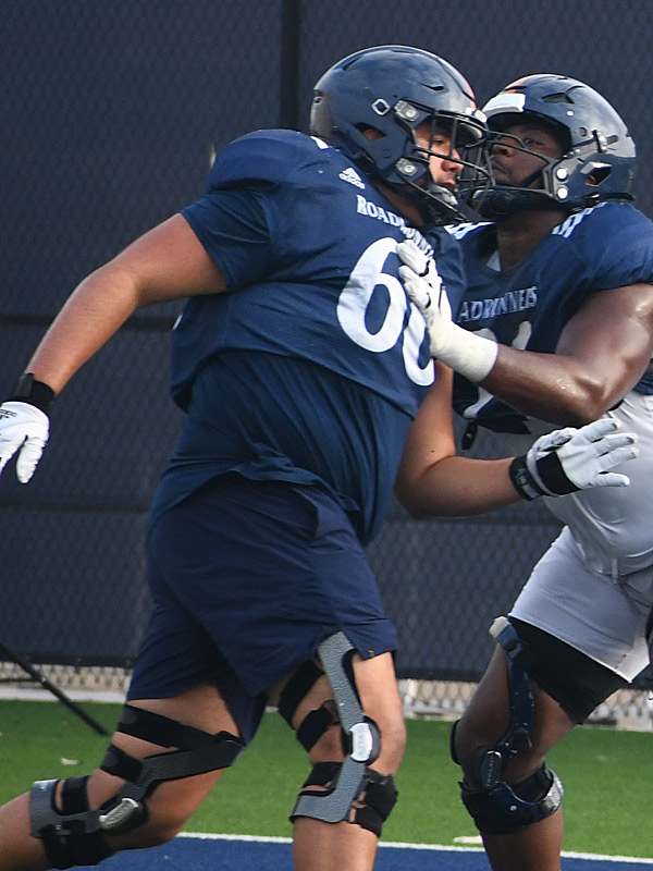 66 Andrew Alvarado. The UTSA offensive line at work in spring football practice on Monday, March 31, 2025. – photo by Joe Alexander