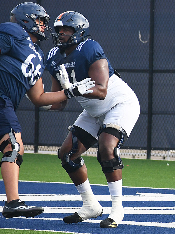 71 Jaylen Garth. The UTSA offensive line at work in spring football practice on Monday, March 31, 2025. – photo by Joe Alexander