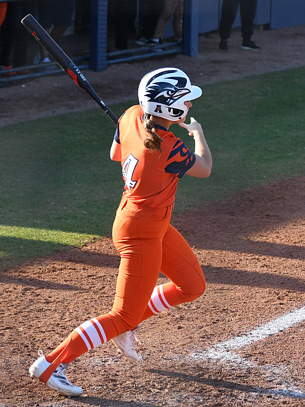 Lindsey Davis. The UTSA softball team opened the season with a 3-2 victory over Weber State at Roadrunner Softball Field on Friday, Feb. 7, 2025. – photo by Joe Alexander