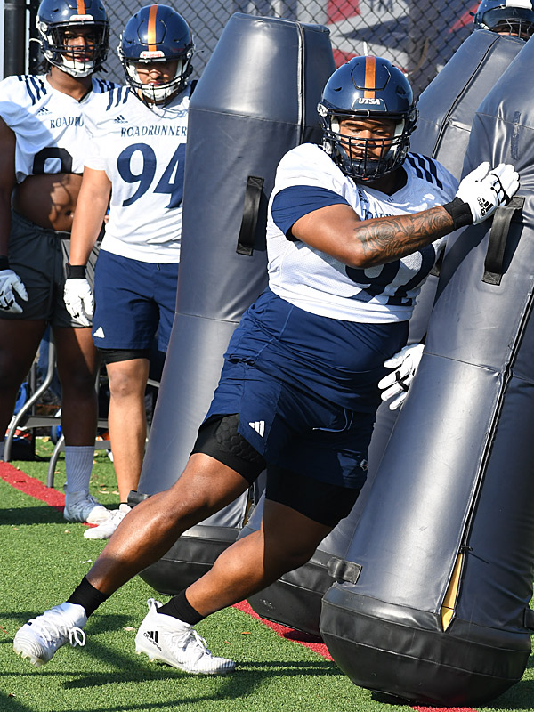 Jaylan Jones. UTSA defensive line drills during spring practice on Tuesday, March 25, 2025. – photo by Joe Alexander
