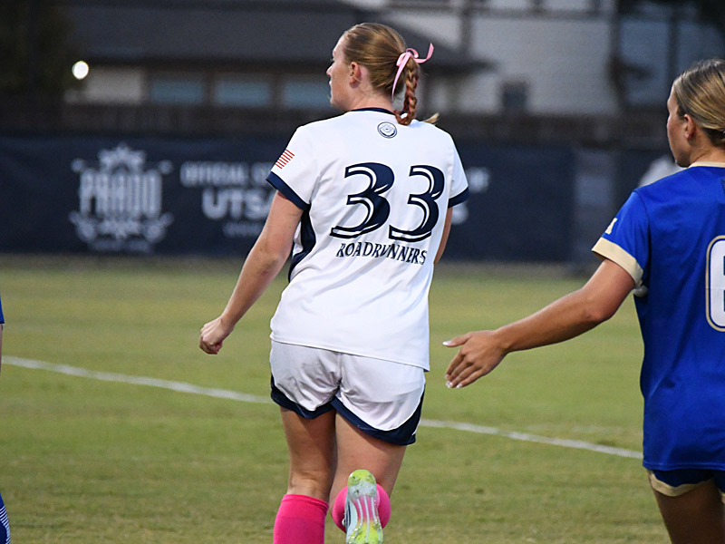 Peyton Godbey on the possession that resulted in UTSA’s goal UTSA women’s soccer lost to Tulsa 2-1 on Thursday, Oct. 10, 2024, at Park West Athletics Complex. – photo by Joe Alexander