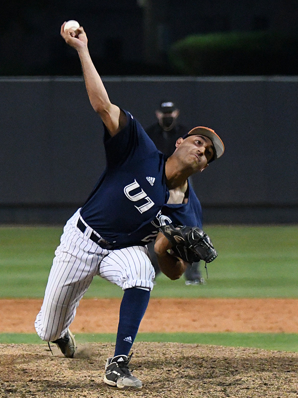 UTSA’s Arturo Guajardo pitching against Middle Tennessee on April 9, 2021 at Roadrunner Field. – photo by Joe Alexander