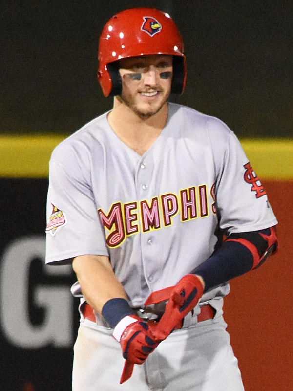 St. Louis Cardinals prospect and Memphis Redbirds catcher Andrew Knizner playing against the Missions at Wolff Stadium on Tuesday, April 9, 2019. - photo by Joe Alexander