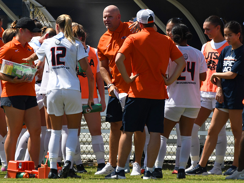 Coach Derek Pittman. UTSA and Charlotte tied 1-1 in American Athletic Association women’s soccer on Sunday at Park West. – photo by Joe Alexander