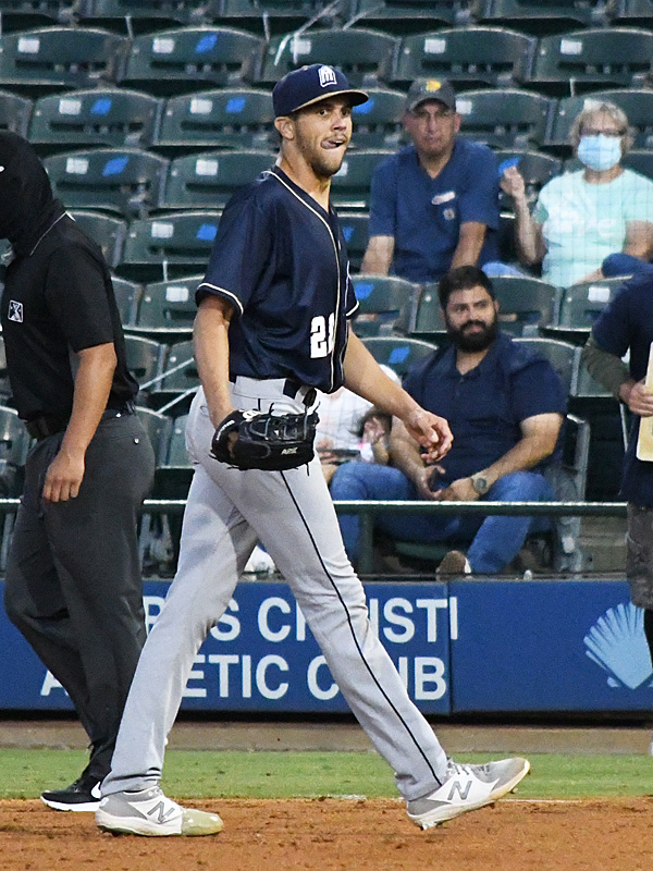 James Reeves pitching for the San Antonio Missions on May 6, 2021, in Corpus Christi. – photo by Joe Alexander