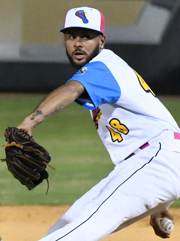 Jose Esapada of the San Antonio Missions and San Diego Padres organization pitching against Monclova of the Mexican league in an exhibition game on Saturday, May 1, 2023, at Wolff Stadium. – photo by Joe Alexander