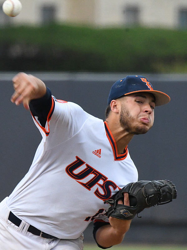 UTSA’s Kyle Sonduck pitching against Southern Miss on April 1, 2021, at Roadrunner Field. – photo by Joe Alexander