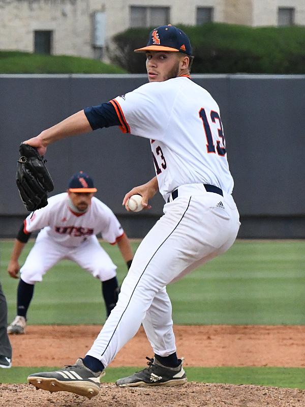 UTSA’s Kyle Sonduck pitching against Southern Miss on April 1, 2021, at Roadrunner Field. – photo by Joe Alexander