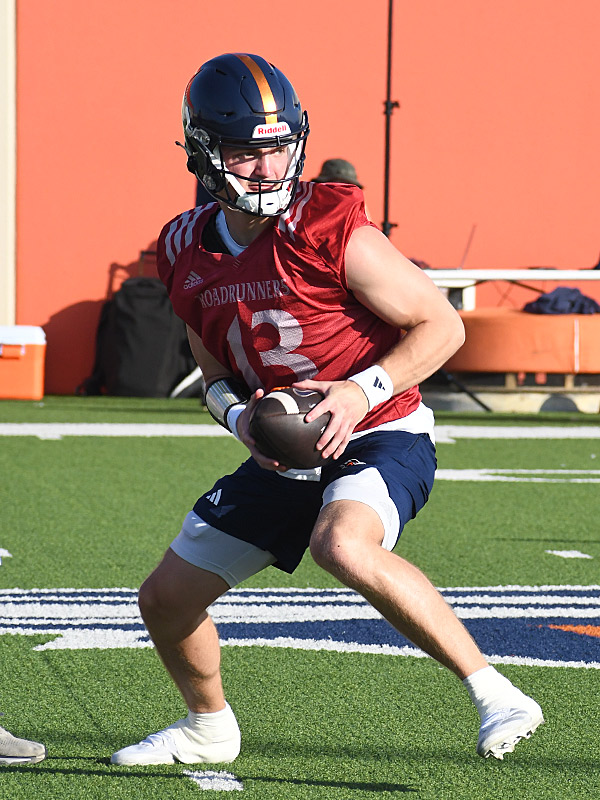 Previous Image Next Image 13-Owen-McCown-UTSA-FBC-spring-20250325-7441 Owen McCown at UTSA spring practice in March, 2025. – photo by Joe Alexander