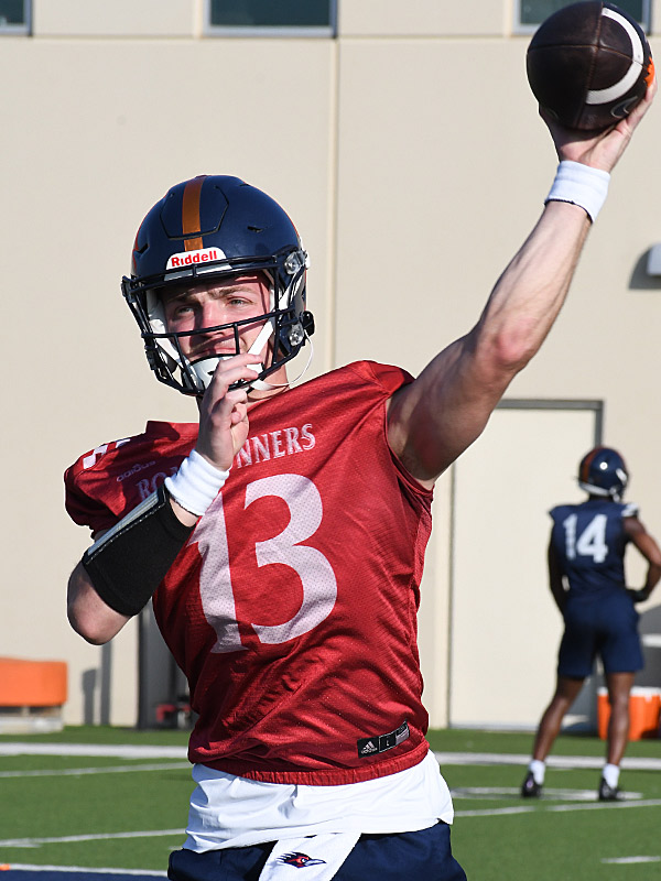 Previous Image Next Image 13-Owen-McCown-UTSA-FBC-spring-20250325-7629 Owen McCown at UTSA spring practice in March, 2025. – photo by Joe Alexander