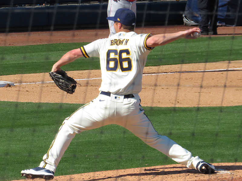 Zack Brown of the 2019 San Antonio Missions pitching for the Milwaukee Brewers in a 2020 spring training game on Feb. 24 at American Family Fields of Phoenix. – photo by Joe Alexander
