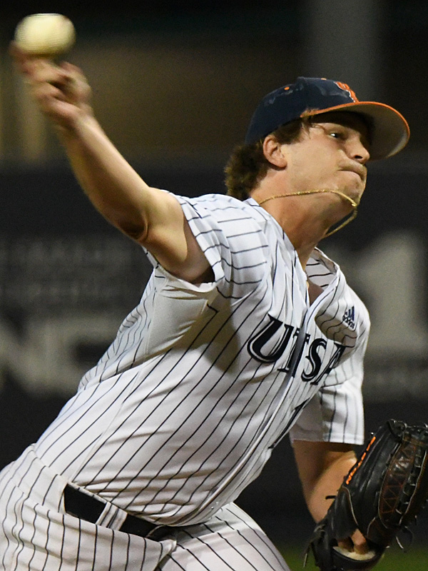 UTSA’s Shane Anderson pitching against Rice on April 23, 2021, at Roadrunner Field. – photo by Joe Alexander
