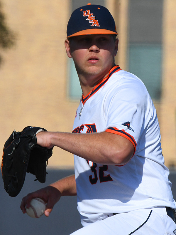 UTSA’s Simon Miller pitching against UT Arlington on March 7, 2021, at Roadrunner Field. – photo by Joe Alexander