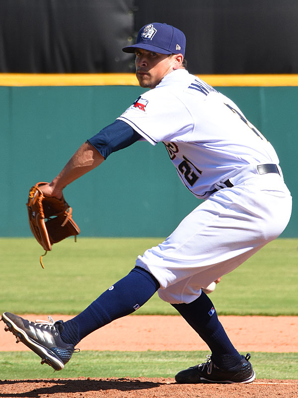 Taylor Williams pitching for the San Antonio Missions against the Oklahoma City Dodgers on April 28, 2019 at Wolff Stadium. – photo by Joe Alexander