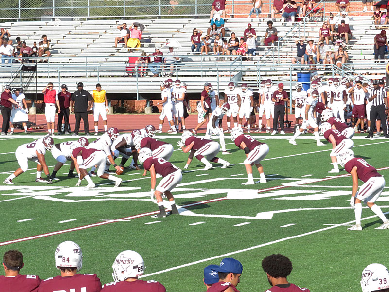 Previous Image Next Image Trinity-McMurry-def-1534 Trinity vs. McMurry Trinity beat McMurry on Thursday, Sept. 5, 2019, in the Tigers’ season opener. – photo by Joe Alexander