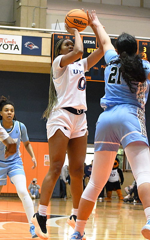 UTSA’s Elyssa Coleman playing against Tulane in American Athletic Conference women’s basketball on Feb. 4, 2024, at the Convocation Center. – photo by Joe Alexander