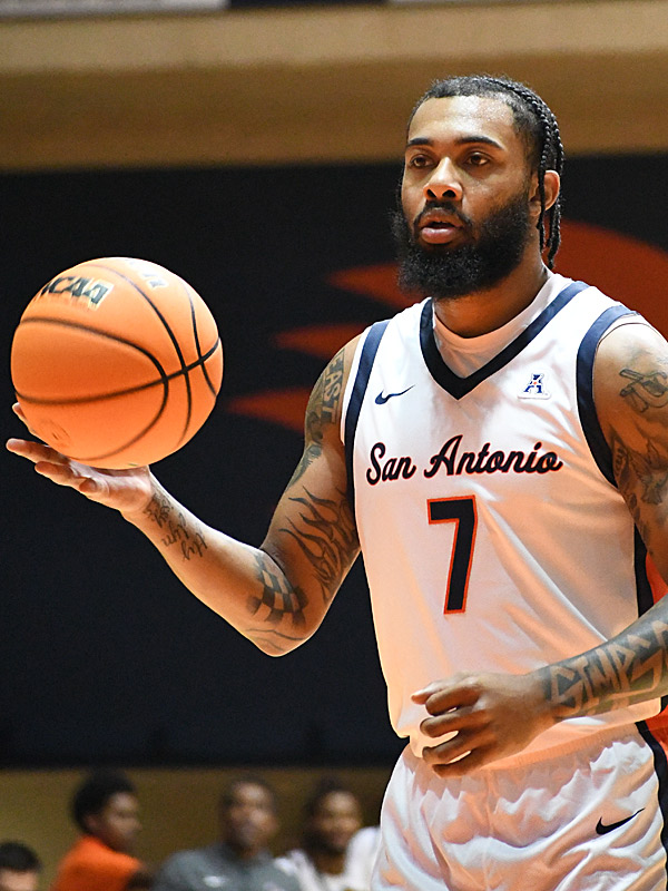 Jamir Simpson. UTSA beat College of Biblical Studies 97-30 in the men’s basketball season opener on Wednesday, Nov. 5, 2025, at the Convocation Center. -photo by Joe Alexander