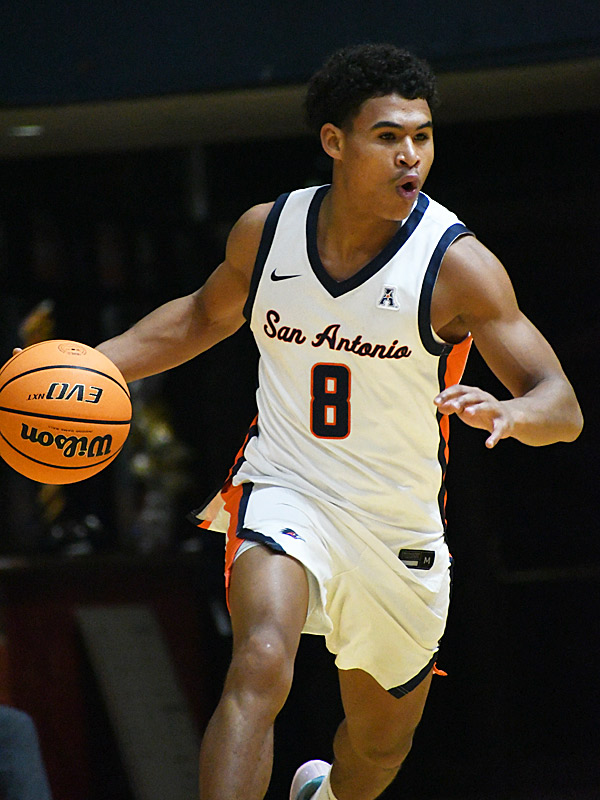 LJ Brown. UTSA beat College of Biblical Studies 97-30 in the men’s basketball season opener on Wednesday, Nov. 5, 2025, at the Convocation Center. -photo by Joe Alexander
