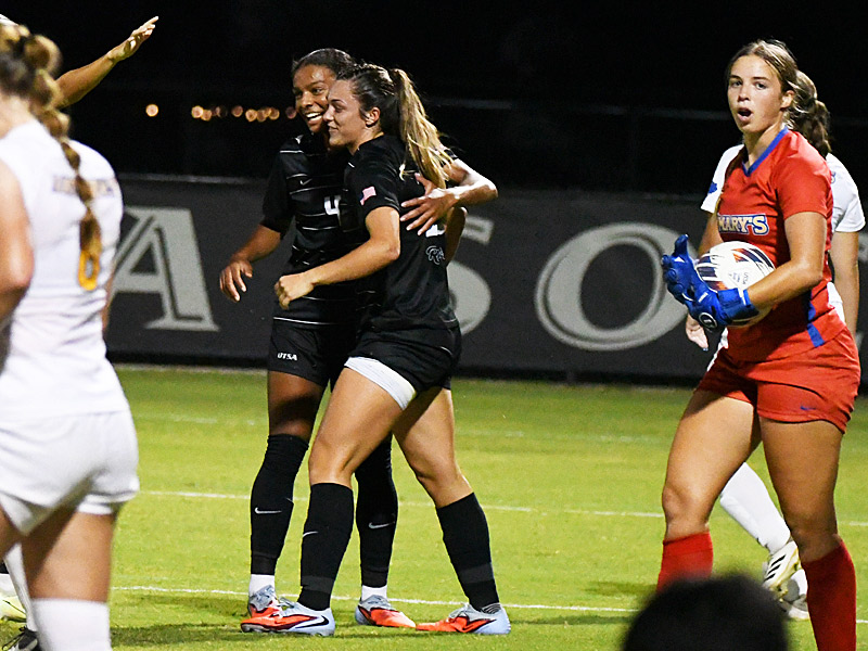 UTSA celebrates Brooklyn Bailey’s second-half goal. UTSA women’s soccer beat St. Mary’s 3-0 on Thursday, Aug. 21, 2025, at Park West Athletics Complex. – photo by Joe Alexander