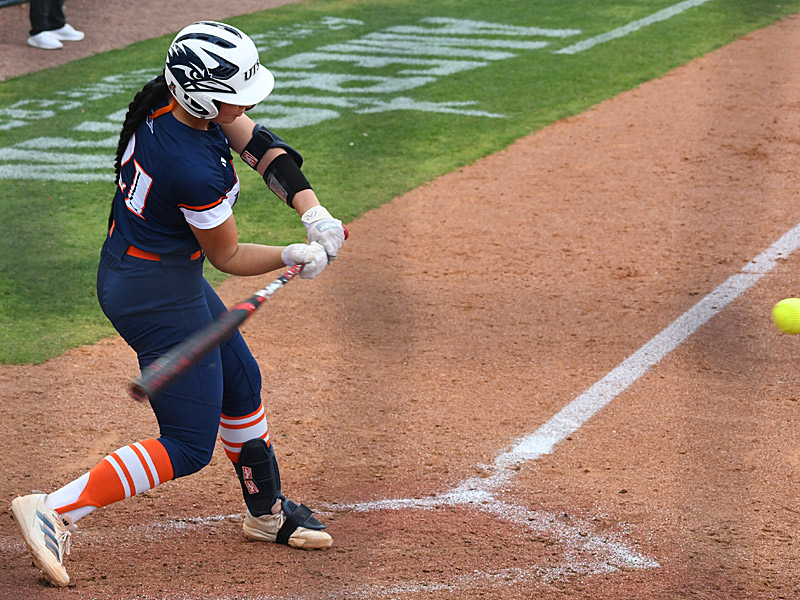 Camryn Robillard homered in the second inning during the Roadrunners’ 8-2 victory over A&M-Corpus Christi on Tuesday, April 22, 2025, at Roadrunner Softball Field. – photo by Joe Alexander