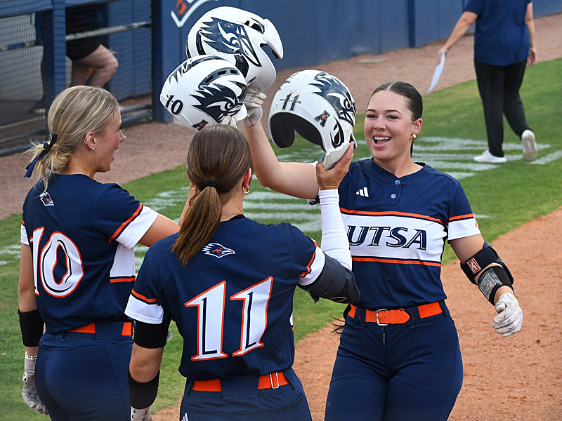 Camryn Robillard homered in the second inning during the Roadrunners’ 8-2 victory over A&M-Corpus Christi on Tuesday, April 22, 2025, at Roadrunner Softball Field. – photo by Joe Alexander